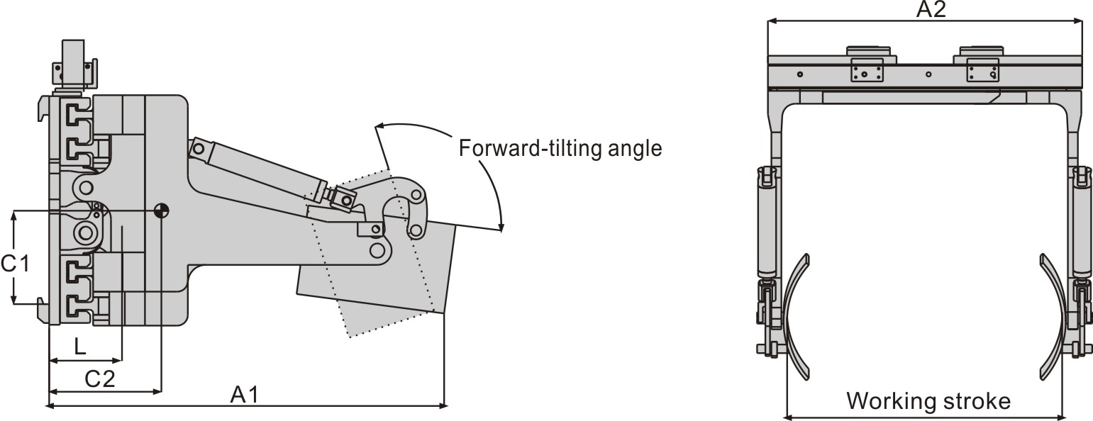 2.The clamping and forward-tilting are added with one more oil circuit respectively.