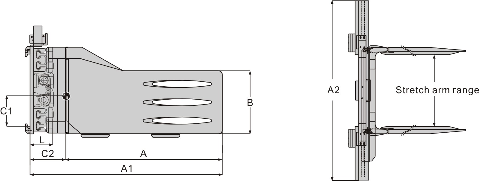 3.A stands for standard, B, side shifting, E, the fifth generation product, and A and C, clamp arm length.